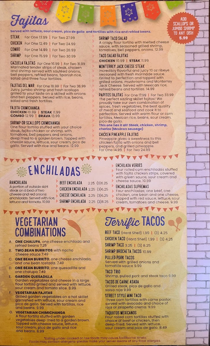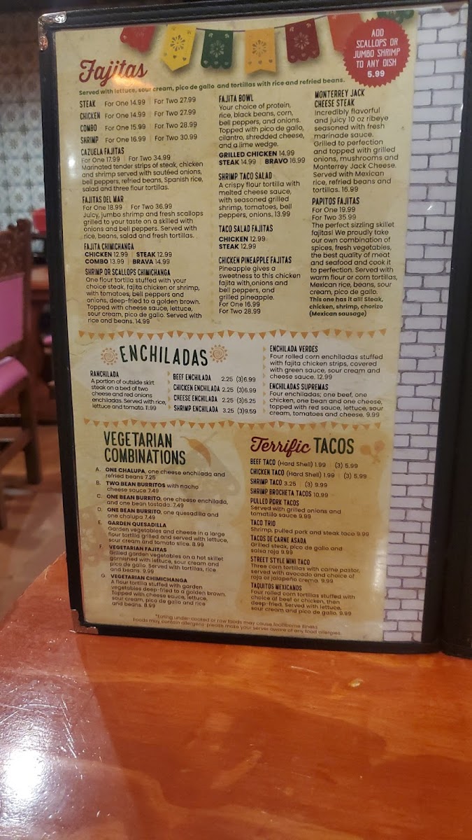 For a hearty meal, their A La Carte menu delights with classic items such as Beef and Chicken Burritos, Chalupas, and Chile Rellenos. Vegetarian options shine as well, with creative combos like the Garden Quesadilla that highlight fresh vegetables and rich flavors.